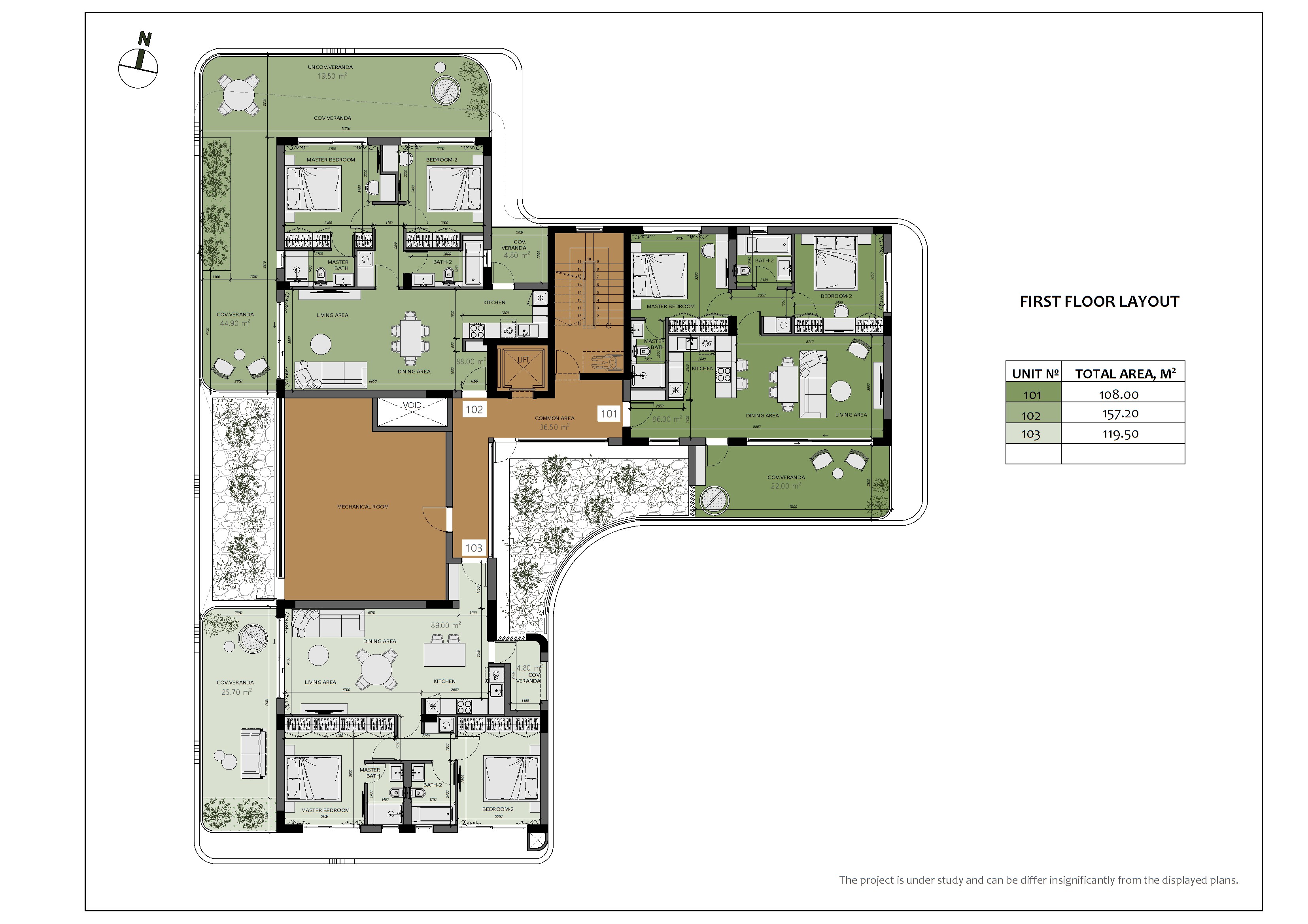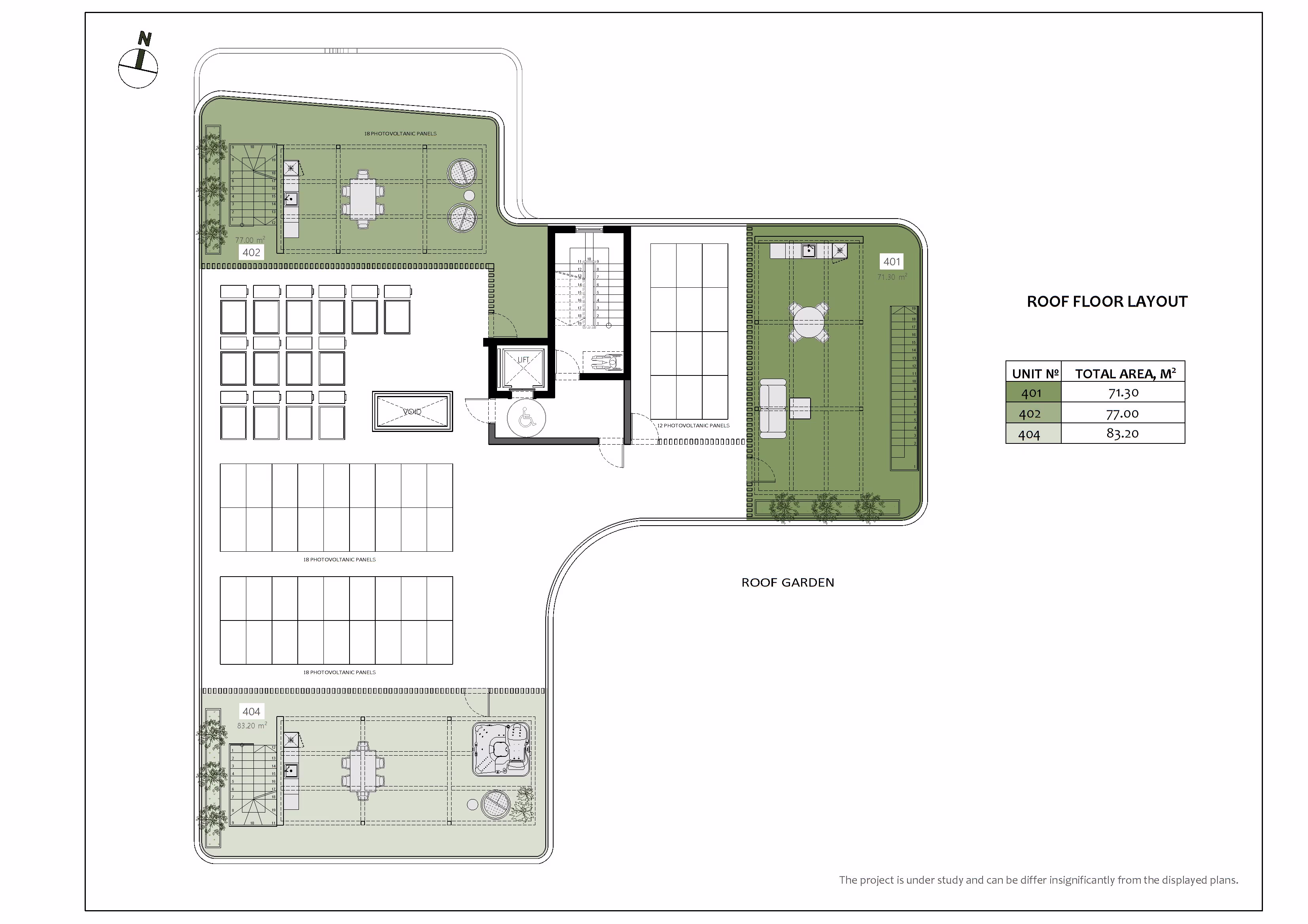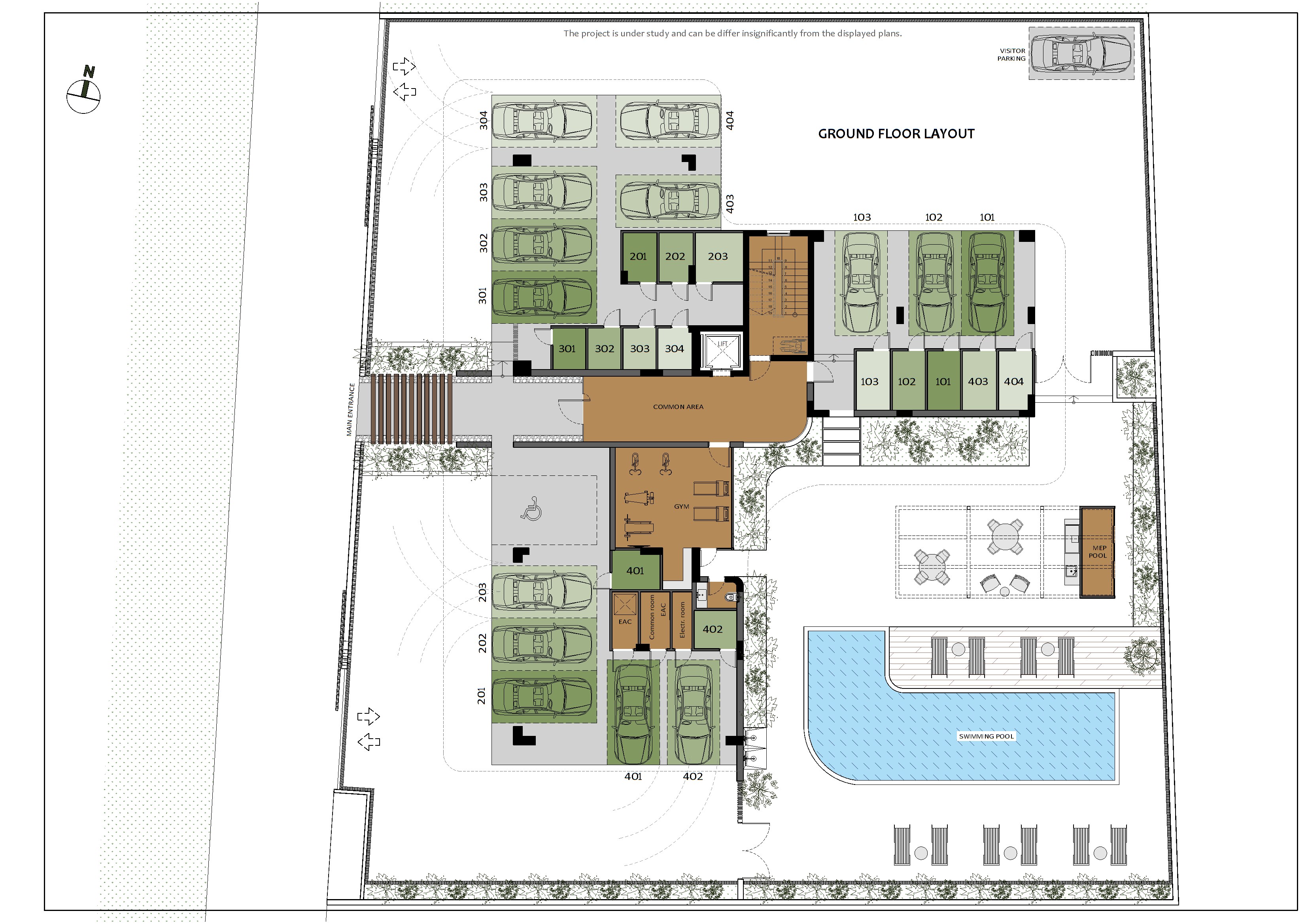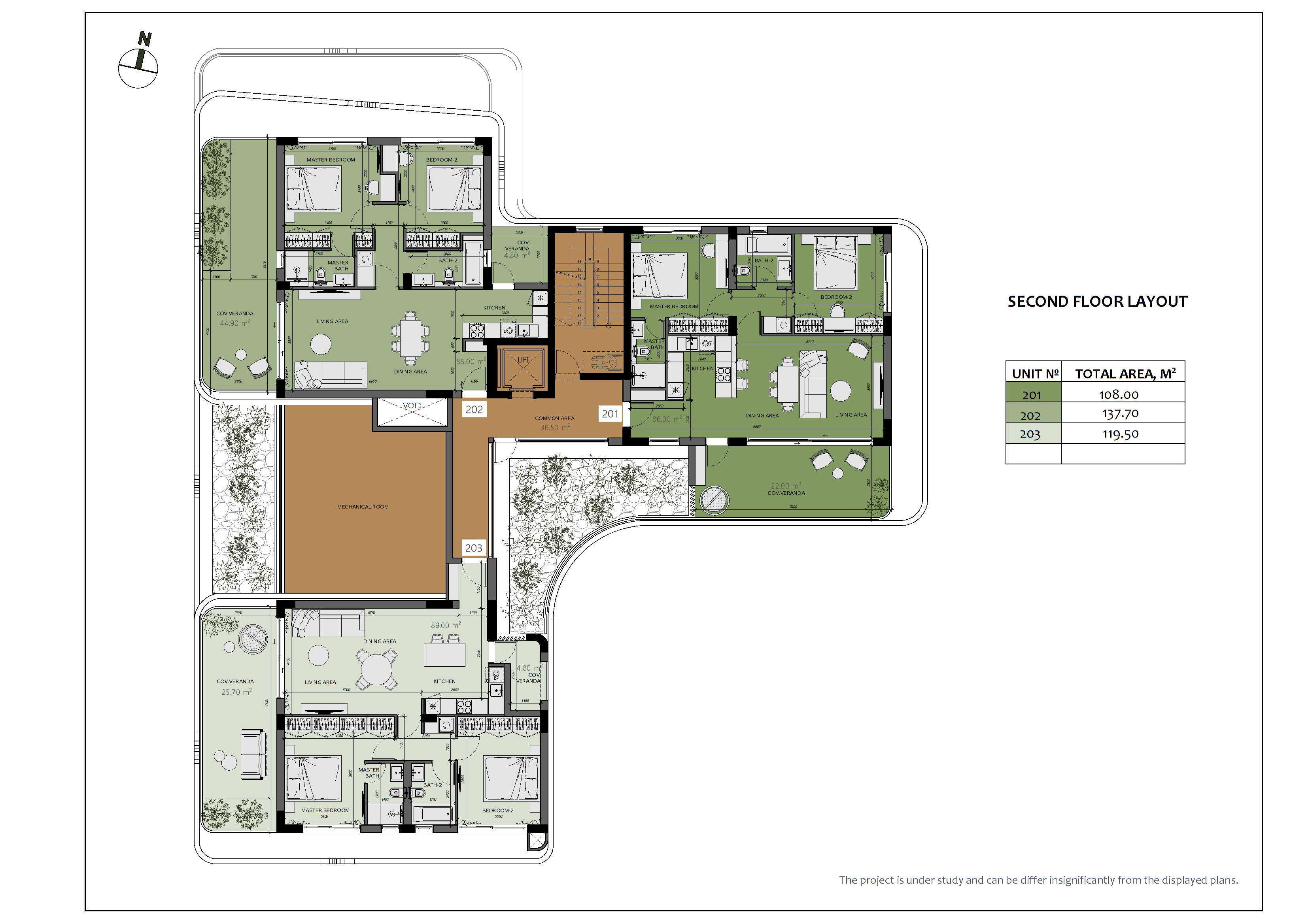 The complex has 14 apartments (one and two bedrooms) with a comfortable, functional and spacious plans layout. There is a large outdoor swimming pool with barbecue area, a gym, as well as parking spaces and storage rooms for each apartment.