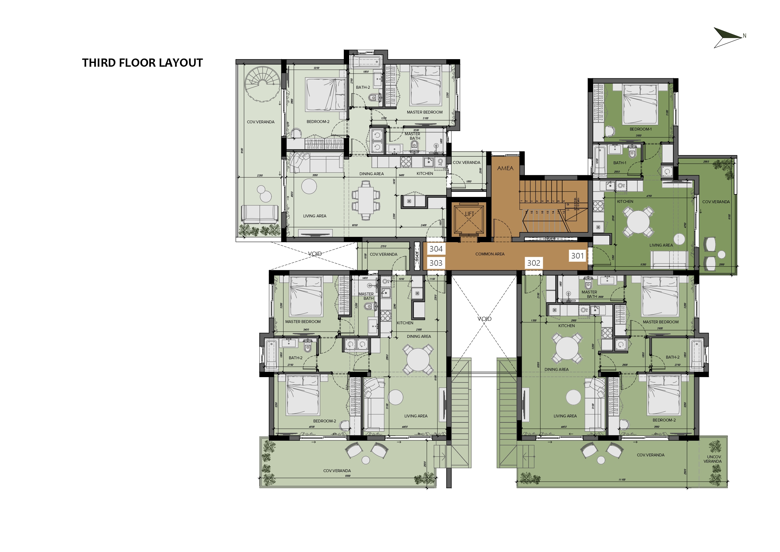 The complex has only 12 apartments (one and two bedrooms) with a comfortable layout. There is an outdoor swimming pool, a gym, as well as parking spaces and storage rooms for each apartment.
